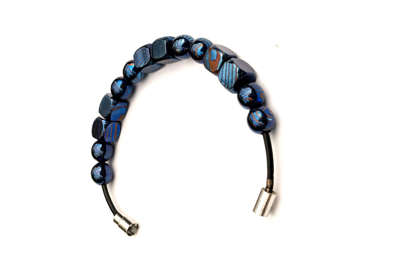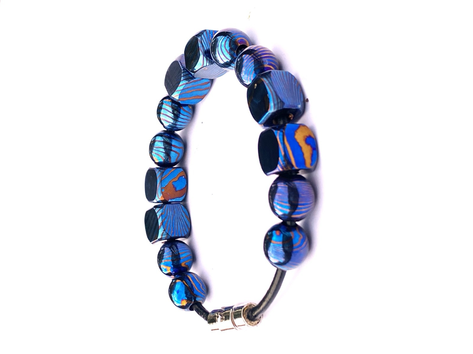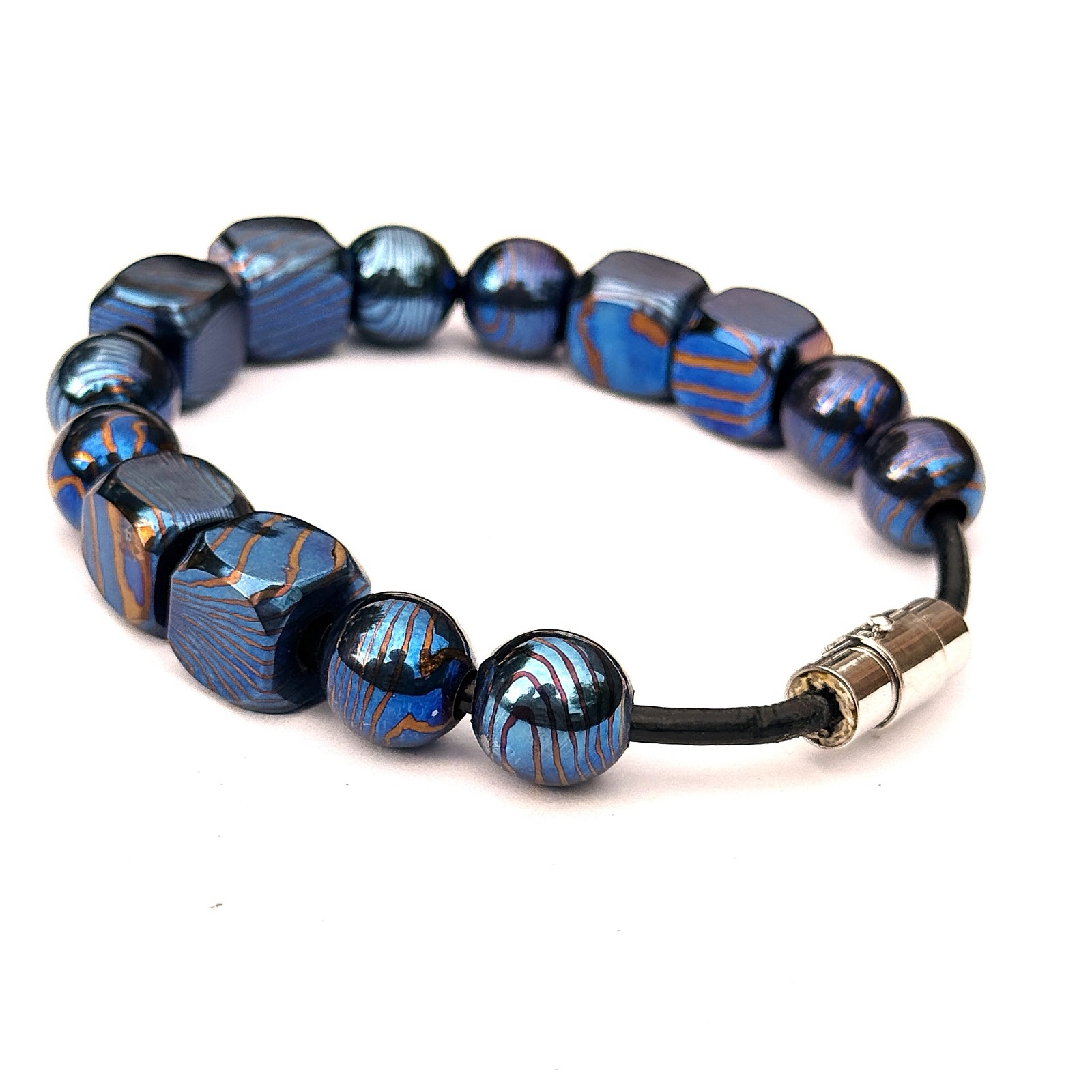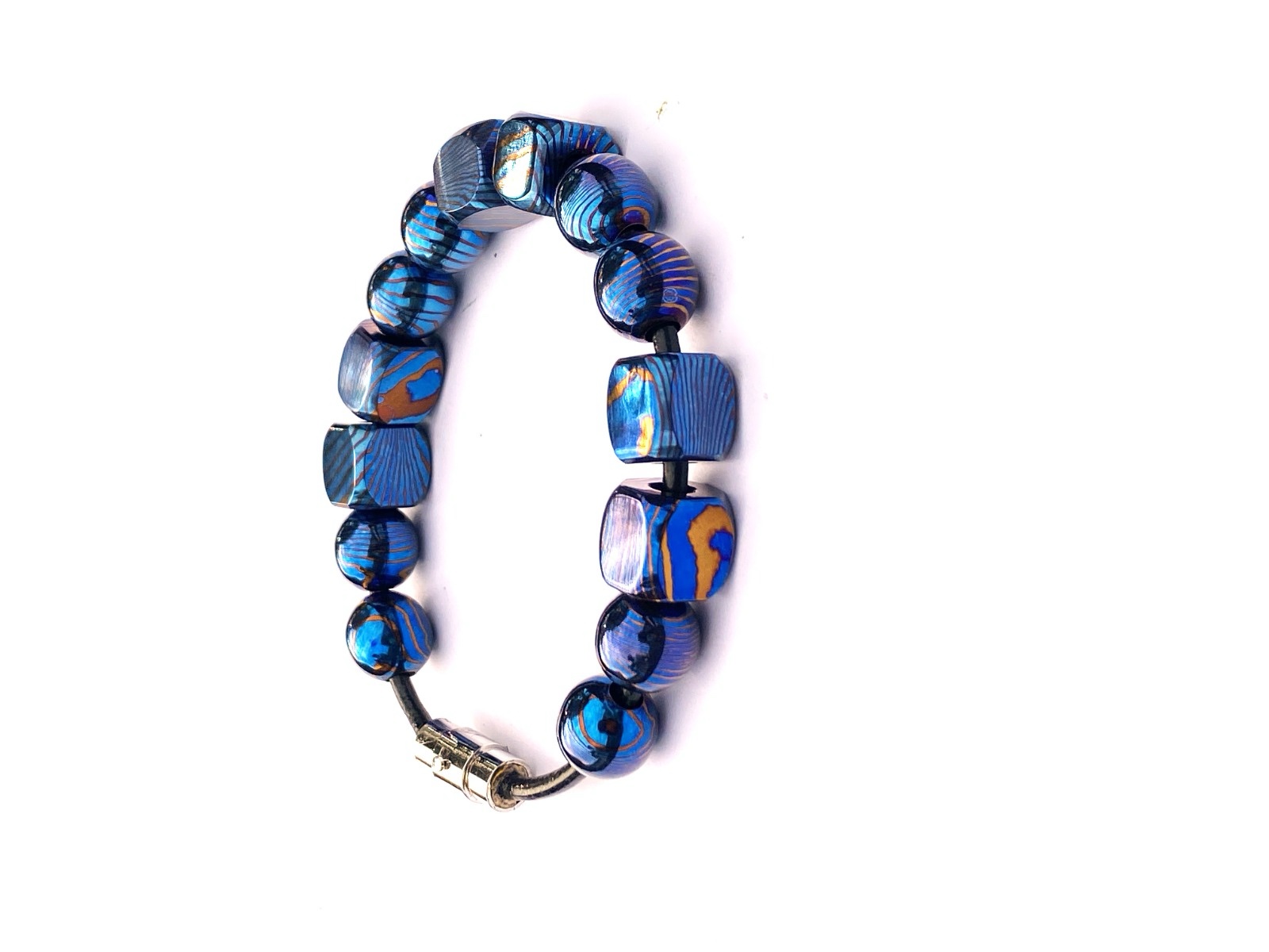 Beaded bracelet made of handcrafted Timascus with individual patterns, made to fit by adjustment holes and rough but sophisticated design. Perfect for fans and collectors of EDC.