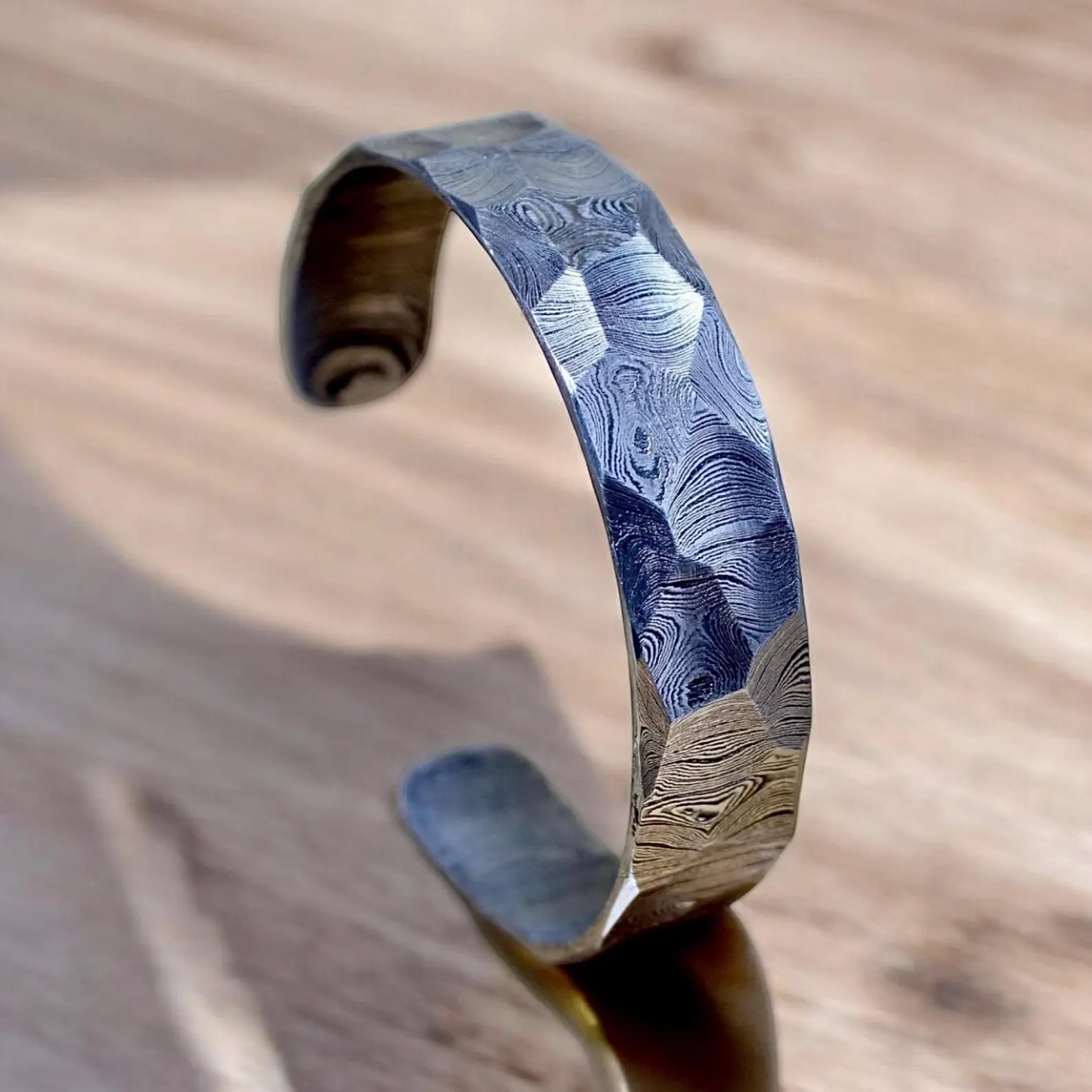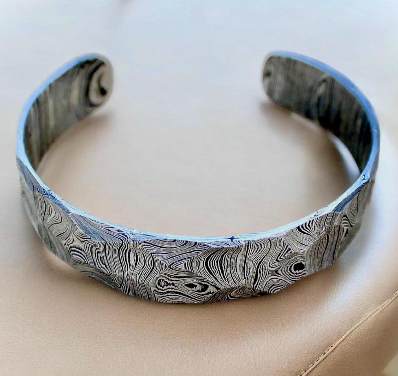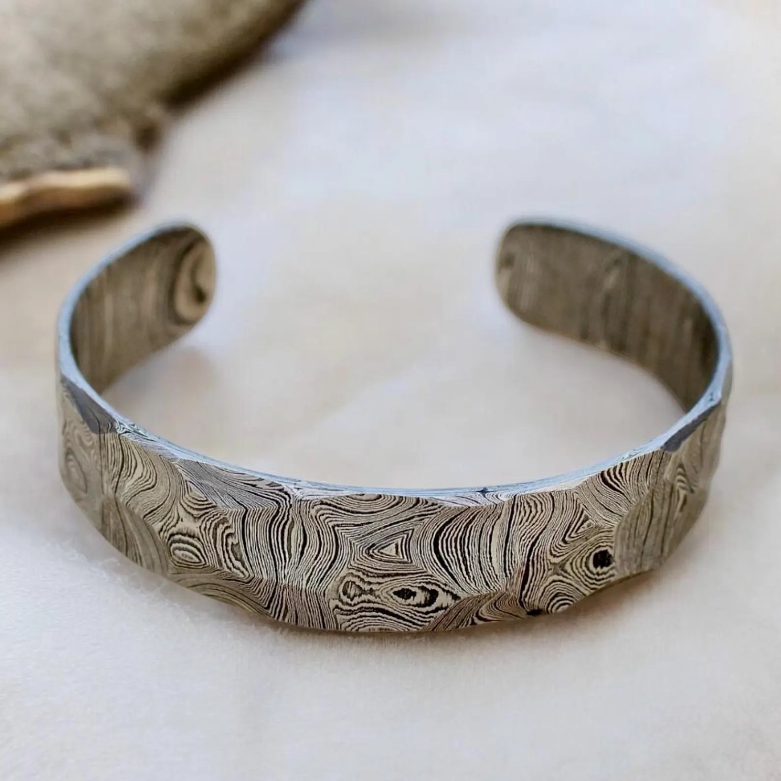 Forged by skilled artisans using traditional techniques, this Damascus Steel bangle reveals mesmerizing organic patterns through expert acid etching. Each Hammer strike creates unique textures, ensuRing no two pieces are identical.