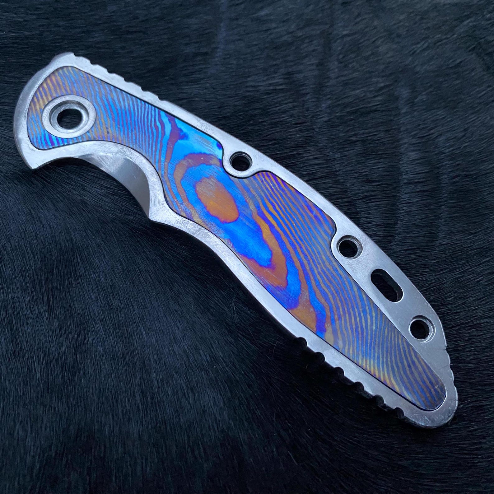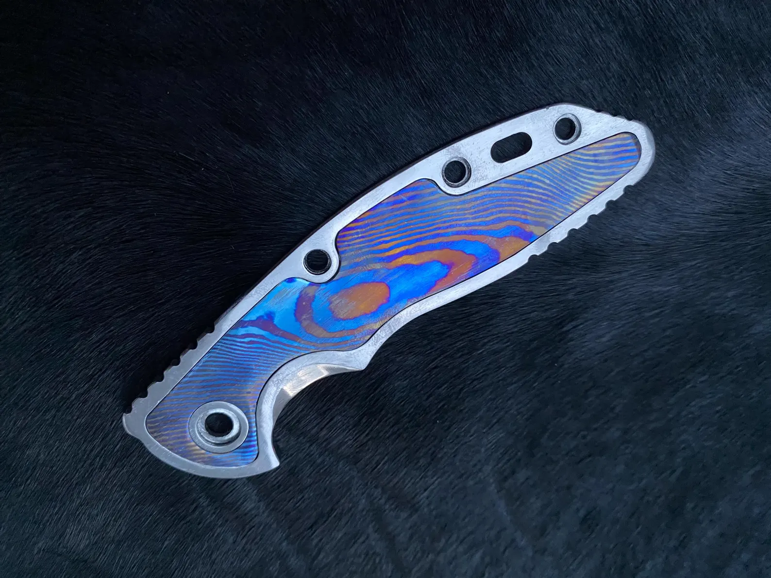 Enhance the look and feel of your Hinderer XM-18 3.5” Knife with this high-end replacement show-side Scale. Crafted from TC4 titanium for lightweight strength, this Scale is meticulously inlaid with Timascus (MokuTi), a stunning alloy of titanium and zirconium known for its vibrant, one-of-a-kind patterns.