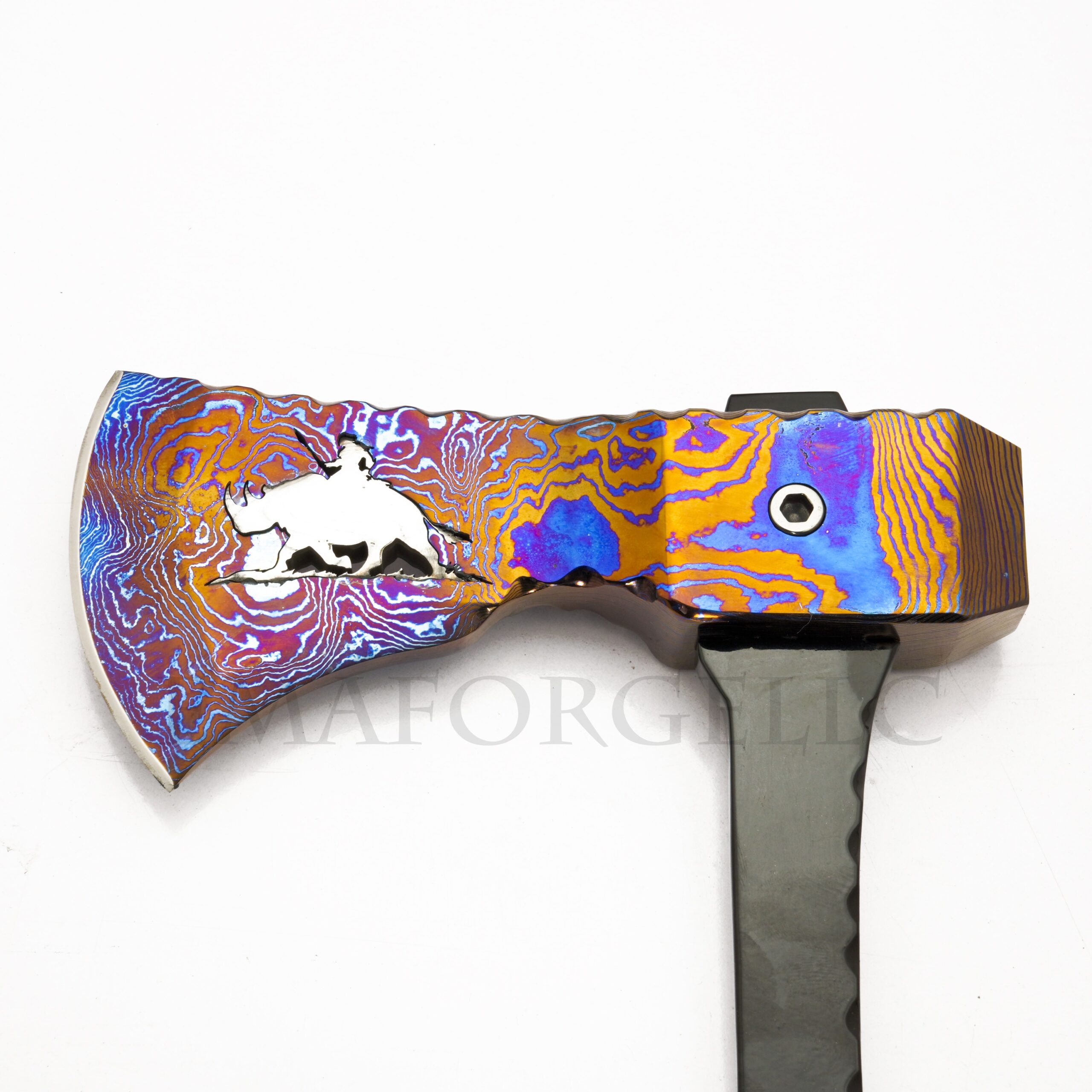 A Collector’s Piece Forged in Titanium Damascus Axe
