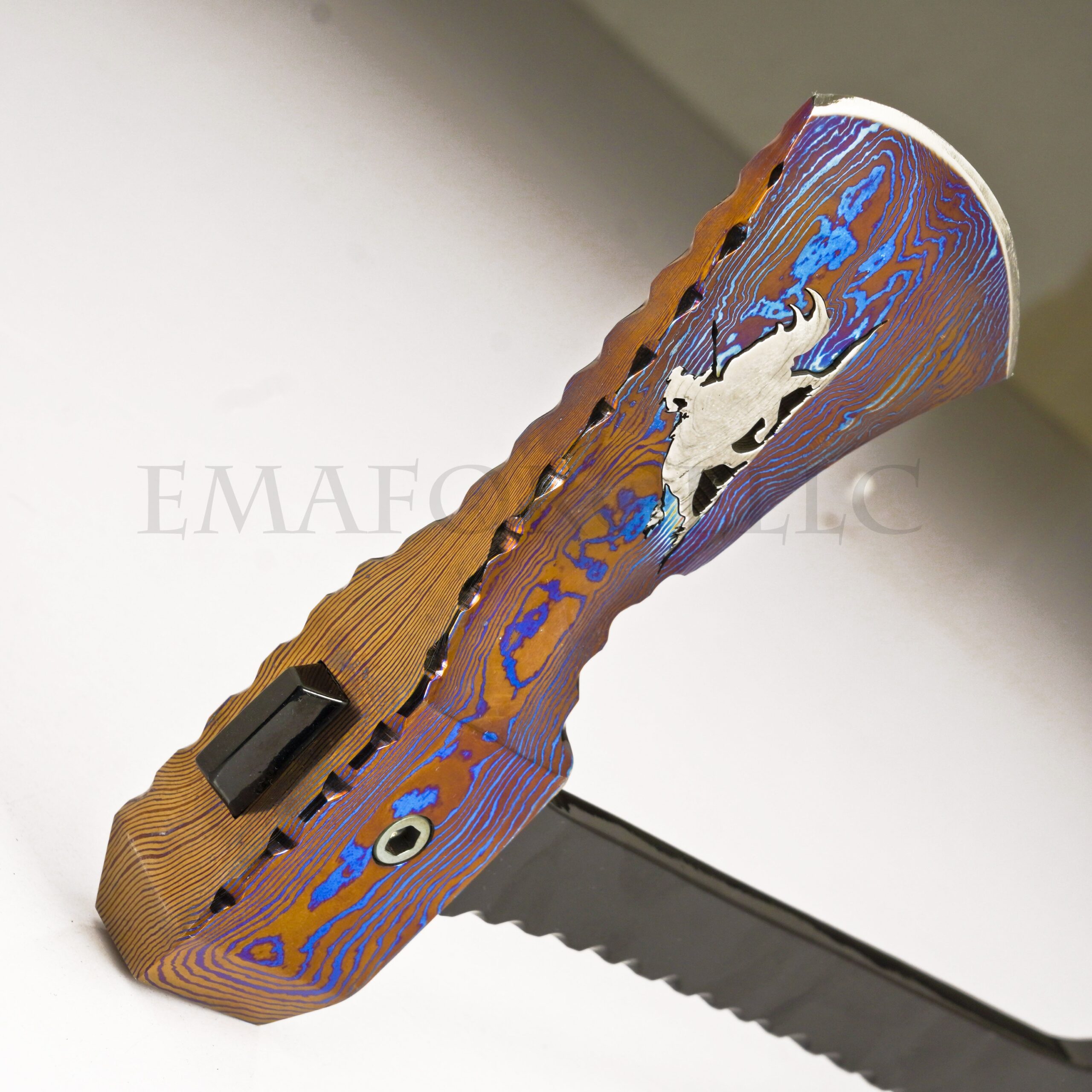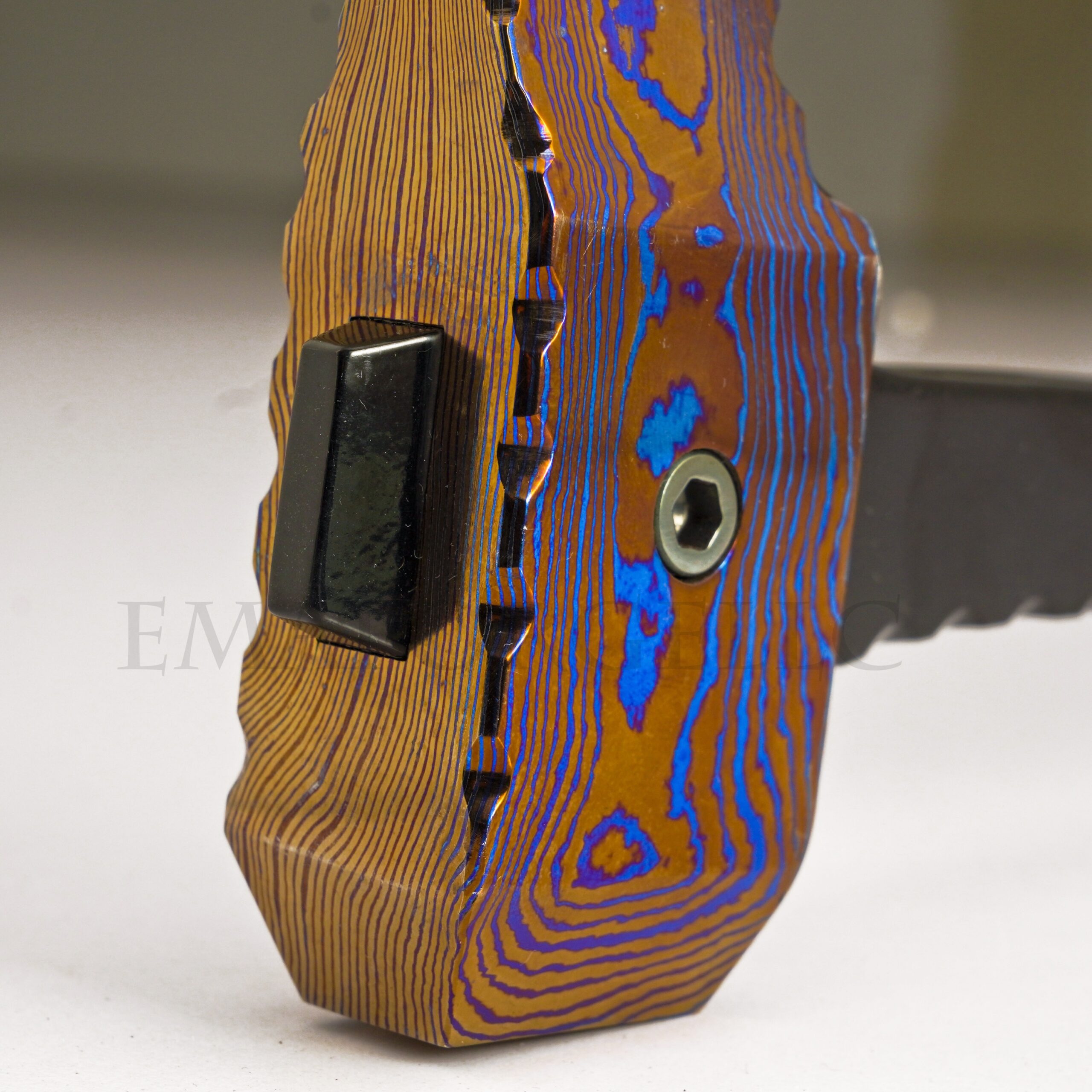 Material: Exotic Titanium Damascus (Timascus), offering vibrant colors and zero corrosion.