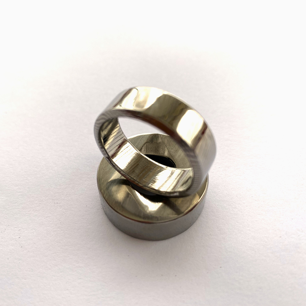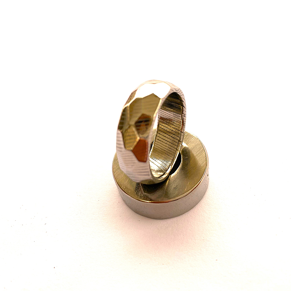 The patterns of each piece are exquisitely different, almost each ring is one and unique as they are made by an ancient technique of folding and layering steel. Eight mm width has a statement like modern profile that is comfortable to wear every day. It is made to be lifetime-that is how your bond is.