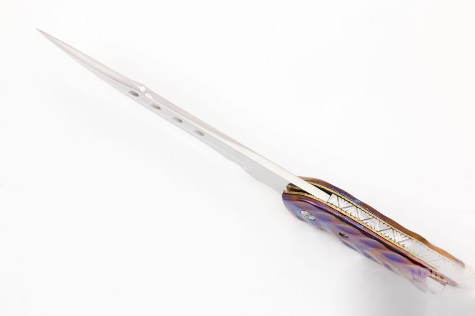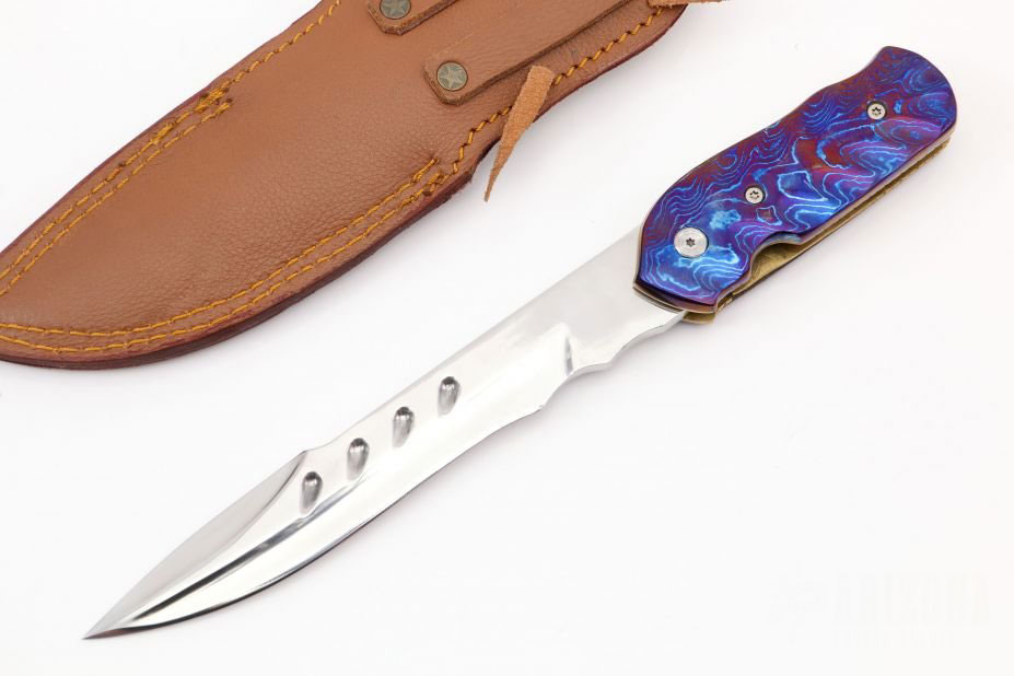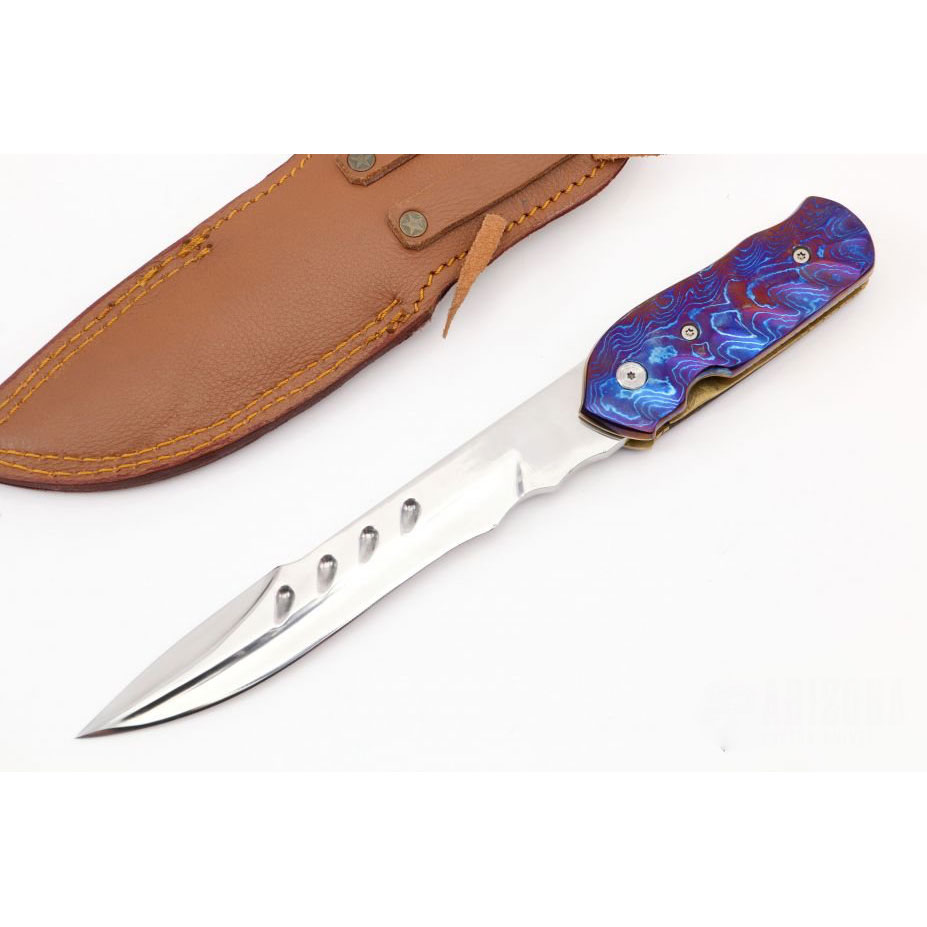 Handle is made of a tough mixture of G10 and titanium, thus providing a firm, no-slip hold, even when wet or otherwise greasy. Such an ergonomic design enables a firm grip when using as chances of hand tiredness or slippage are low. You can carry the knife in tough condition or long time, the design of the handle offers you comfort and grip.