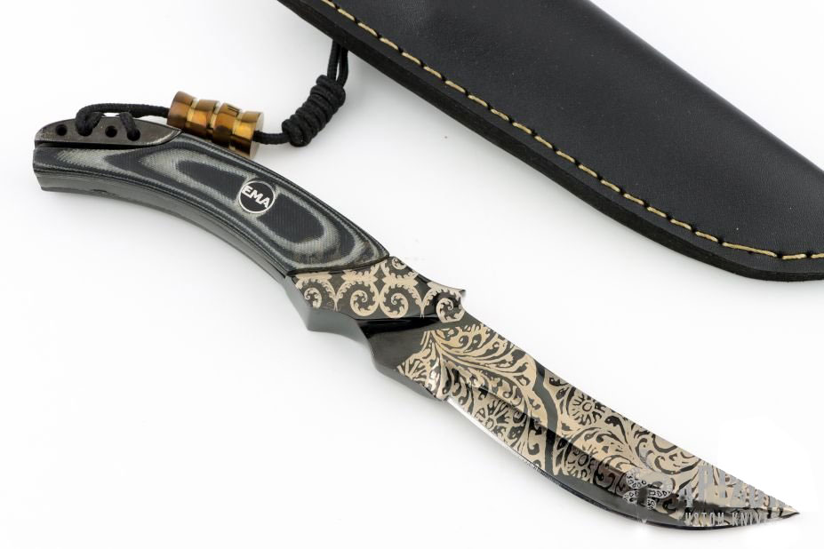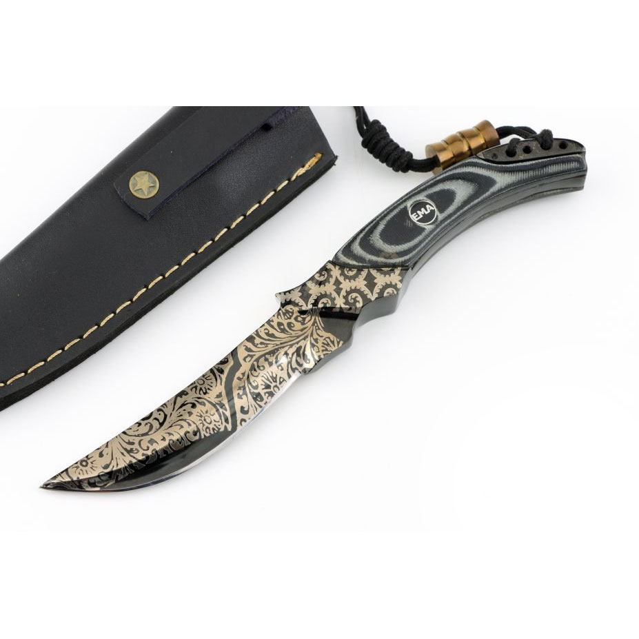 This meticulously crafted Persian fighter delivers the iconic curved blade profile in a practical small format. Forged from 1084 & 15N20 Damascus Steel , its 3″ blade and 2″ handle are carved from a single billet, ensuRing exceptional strength. The acid-etched patterns reveal dramatic contrast in the folded Steel , while the contoured handle offers a secure grip. Weighing just 4.2 oz, it balances precision and portability. The included hand-stitched leather sheath features a belt loop for carry. Whether for training, display, or survival use, this Knife honors Persian blade traditions in a modern EDC-friendly size. Each piece includes a certificate of authenticity.