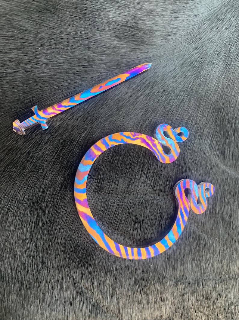 Its multipurpose properties allow using this brooch as either a scarf pin or a shawl hook or even just a fancy brooch to make any set complete. Make it your favorite scarf or shawl you would like to protect or want to add an accent to your outerwear, Timascus Wolf Head Brooch will be the one that will transform this piece into the one you want to show. Made of sleek titanium, that is both long lasting and yet feels like lightweight, it is comfortable to use every day.