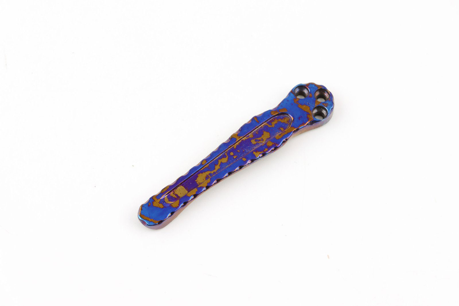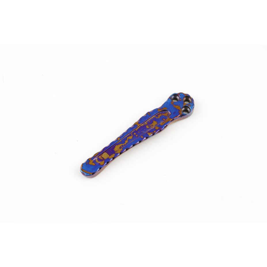 A handcrafted Timascus Pocket Clip compatible with Spyderco Para2, Para3, and Yojimbo2. This titanium-zirconium alloy Clip offers vibrant heat-treated colors while enhancing your EDC’s functionality and style.