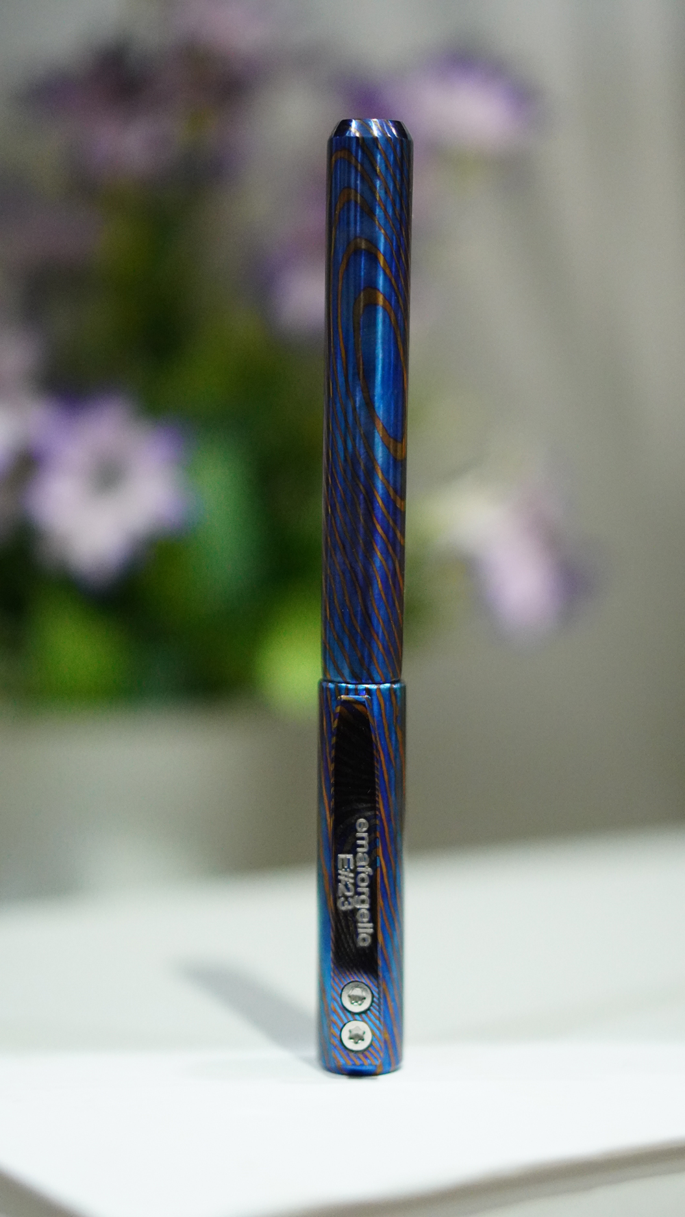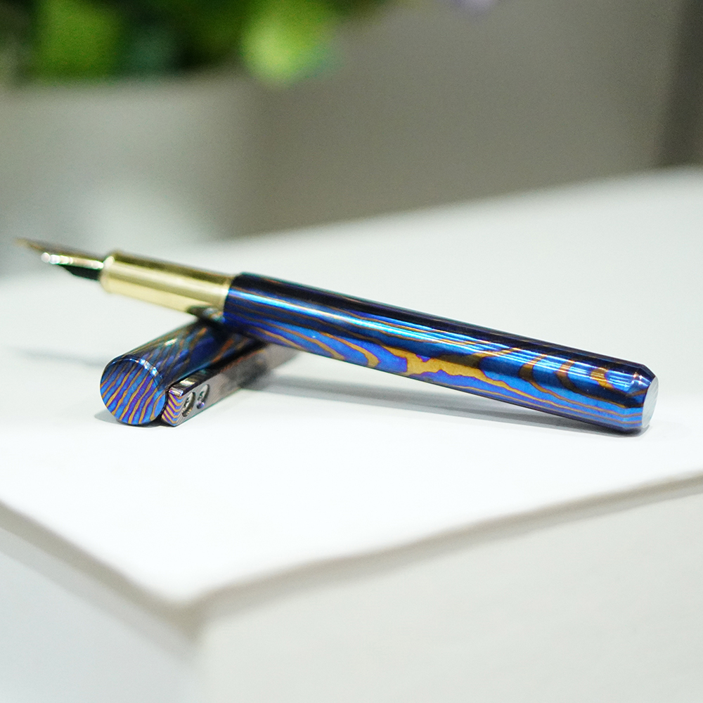 In addition to its incredible performance, this pen is a crowd pleaser and will attract the attention and interest of those who see the attention-grabbing Timascus body. It has a modern clean look and rides on the tangy looks of the titanium alloy, so it will be eye-catching, whether it is on your desk or held in your hand.
