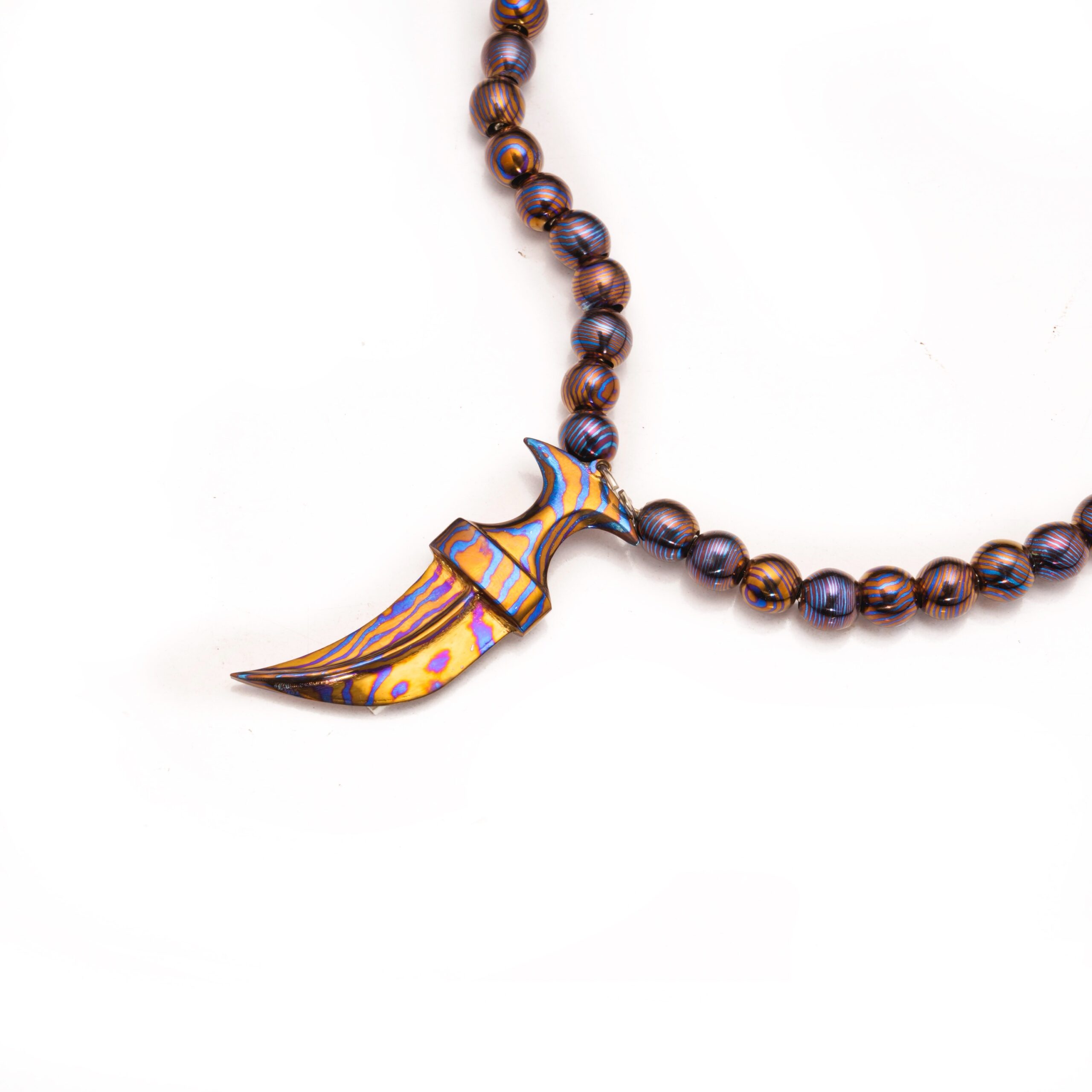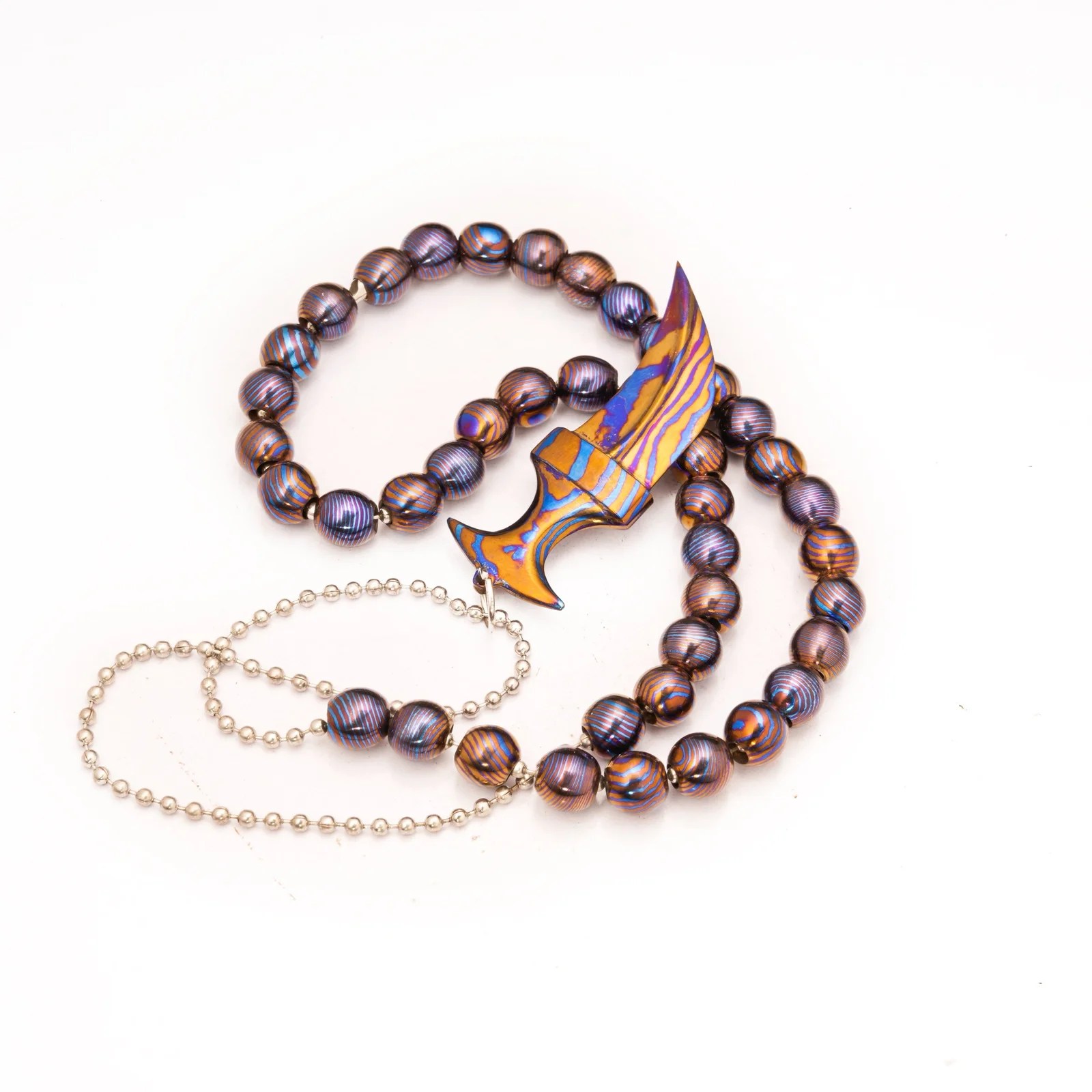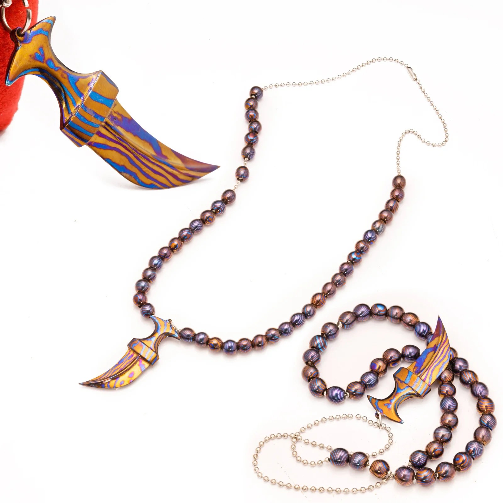 Perfect for both men and women, this necklace is versatile enough for daily wear or as a standout accessory for special occasions. The balance of smooth pearl beads with the striking dagger pendant creates a unique piece of jewelry that embodies both luxury and character.
