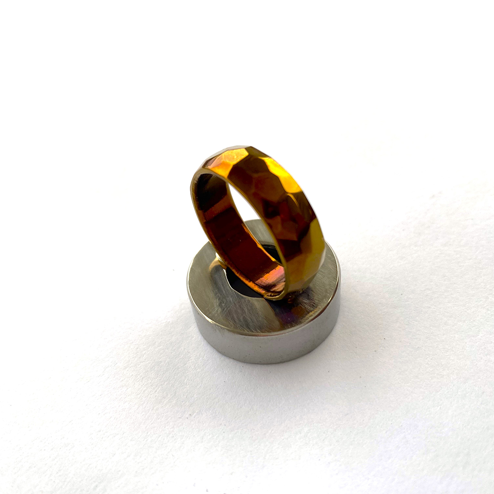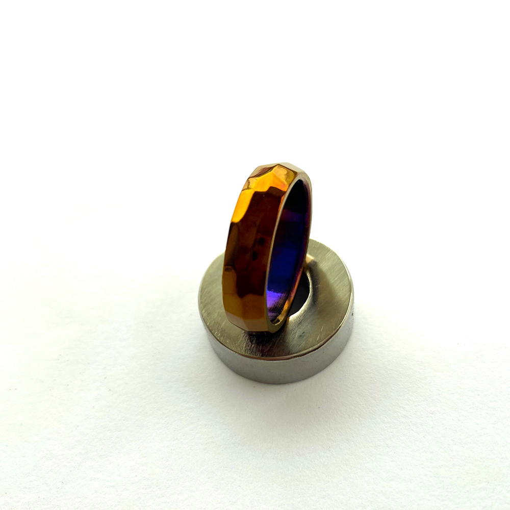 Titanium heat anodised ring is made of high grade titanium, which is considered strong, corrosion-free, and light in weight. Heat anodizing procedure makes the ring have a wonderful and powerful color so that the final effect is bright and energetic. Besides the enhance the looks, this type of anodizing makes the ring even more resilient as it keeps a beautiful and scratch-free appearance even during daily use.