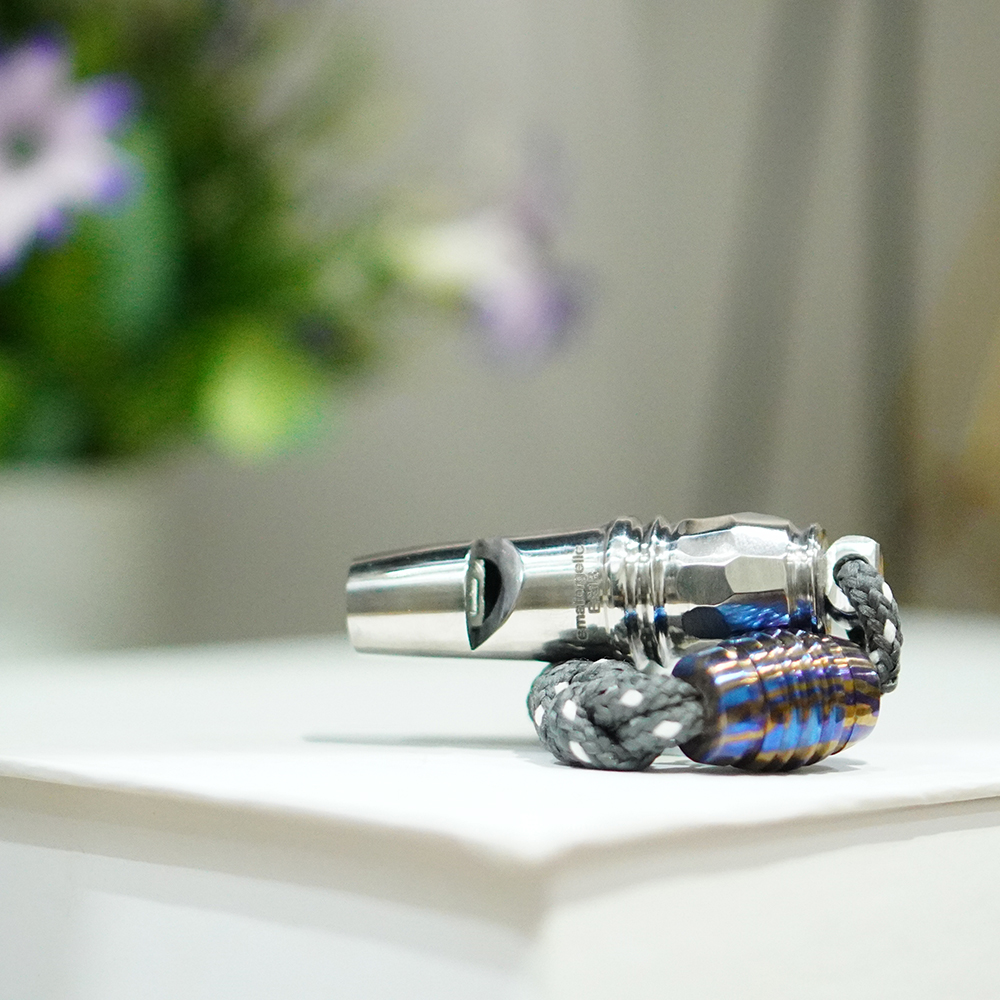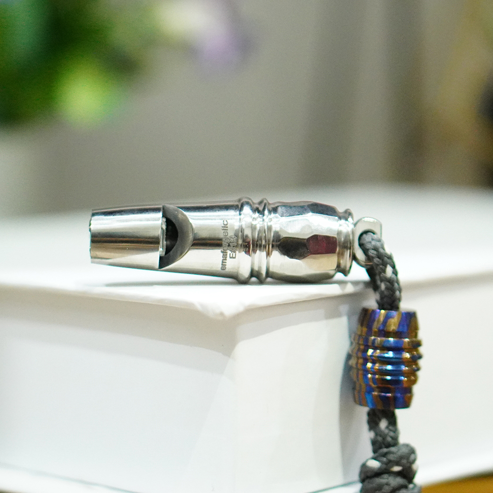 The Timascus lanyard bead though is what makes this whistle unique with the inclusion of artistic flair to the whistle. Timascus is multi-layered titanium alloy to produce striking color combinations by a heat treatment method. Every bead is unique and highly demonstrative of beautiful swirling patterns that are exquisite and at the same, unique. As well as improving the aesthetic values of the whistle, the Timascus bead is also functional. You can use it to connect it to your lanyard, key or backpack, and have it always handy where you need it.