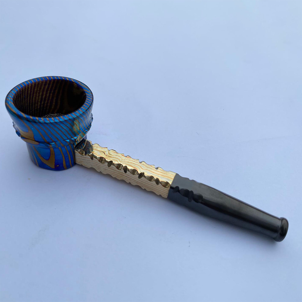 Timascus is a high-performance material that is created by layering various metals to create beautiful, unique swirling patterns that are incredibly durable and aesthetically pleasing. Timascus, which is well-known for its resistance to heat and corrosion, gives your tobacco pipe resilience in addition to aesthetic appeal.